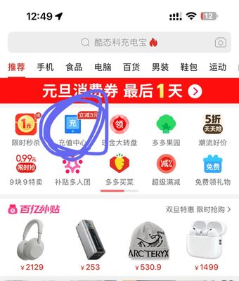 打开拼爹爹,首页点击充值中心如图所示